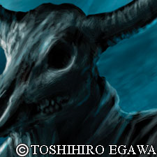 悪意のマスク、それを描いて欲しいとの注文でした。そこで、儀式的な光景を入れてみてはどうかと提案しましたら気に入って頂けてそのまま一気に描き上げました。