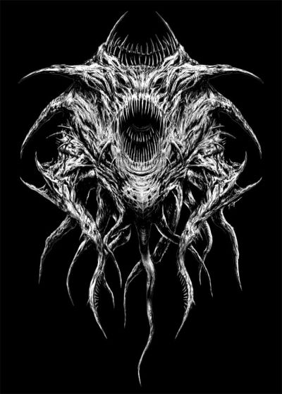 Tシャツのために依頼された絵です。以前彼らのために描いたアルバムカバーアート「Ominous Bloodline」の生き物が原案となっています。その生き物に似せた細く鋭い歯を持つ邪悪な生き物を描いて欲しいとの事でした。